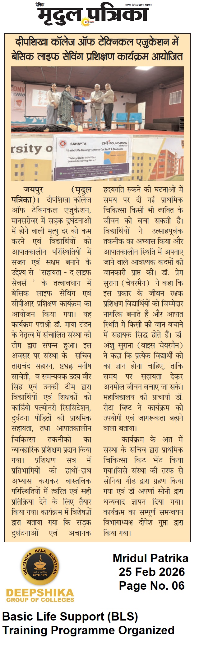 Press Media- Basic Life Support (BLS) Training Programme Organized