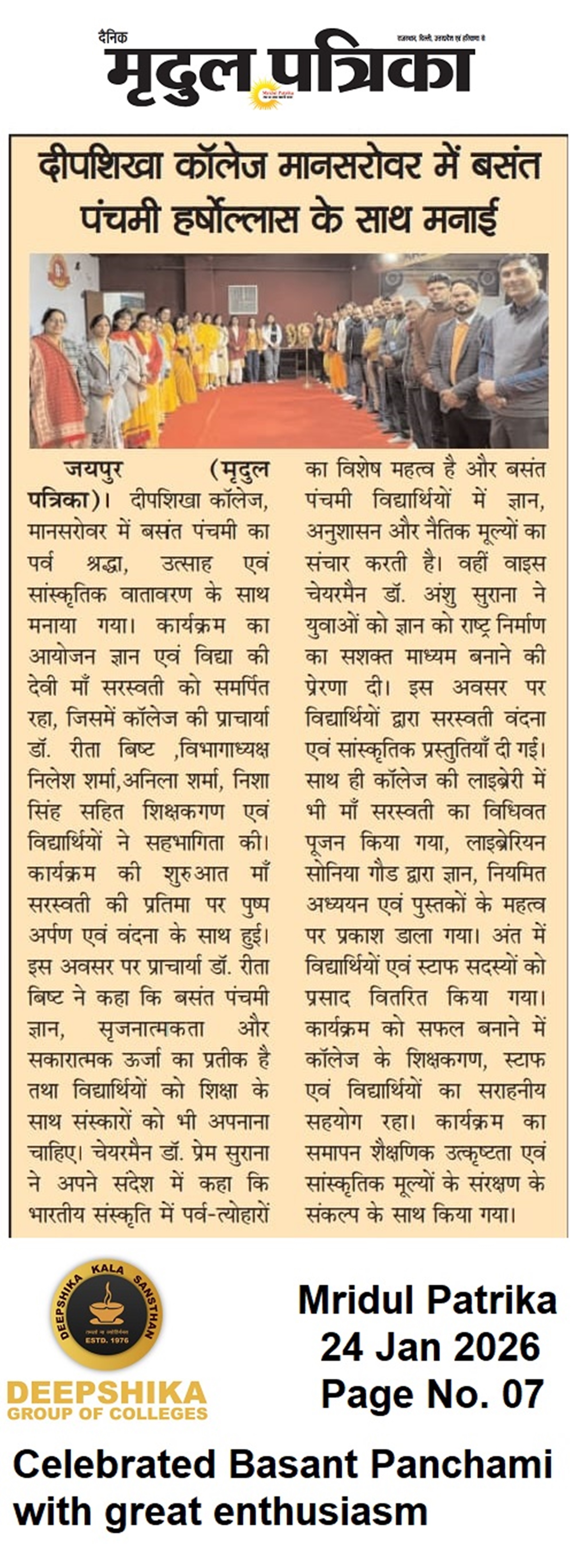 Press Media- Celebrated Basant Panchami with great enthusiasm